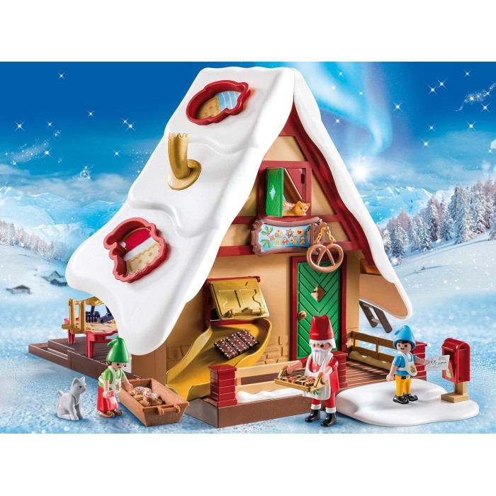 Playmobil 9493 - Christmas Bakery with Cookie CuttersTogether with Santa, the hard-working elves prepare holiday cookies and gingerbread on their baking table. The finished cookies leave the Christmas bakery through the chute. Join the elves in becoming a Christmas baker with the PLAYMOBIL 9493 Christmas Bakery with Cookie Cutters set, with included cookie cutters and stamps!